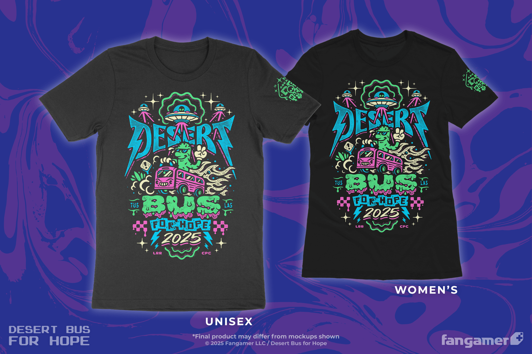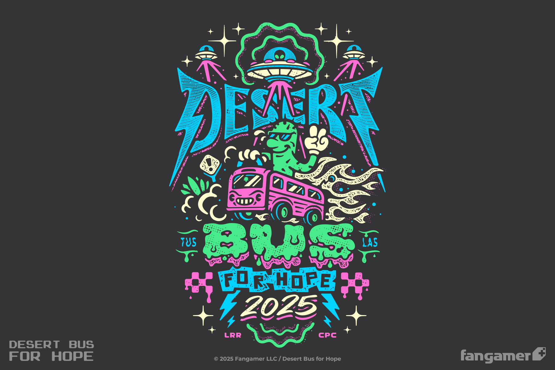 Desert Bus for Hope is back, and as always, all the profits from each sale of our official t-shirt will benefit Child's Play. (Of course, each dollar will also go to keeping the Desert Bus moving and raising money even longer.)