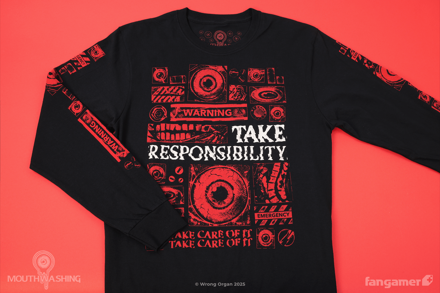 This official MOUTHWASHING long-sleeved shirt was designed by Jorge M. Velez and printed by Forward on soft, 100% cotton shirts by Port & Company.