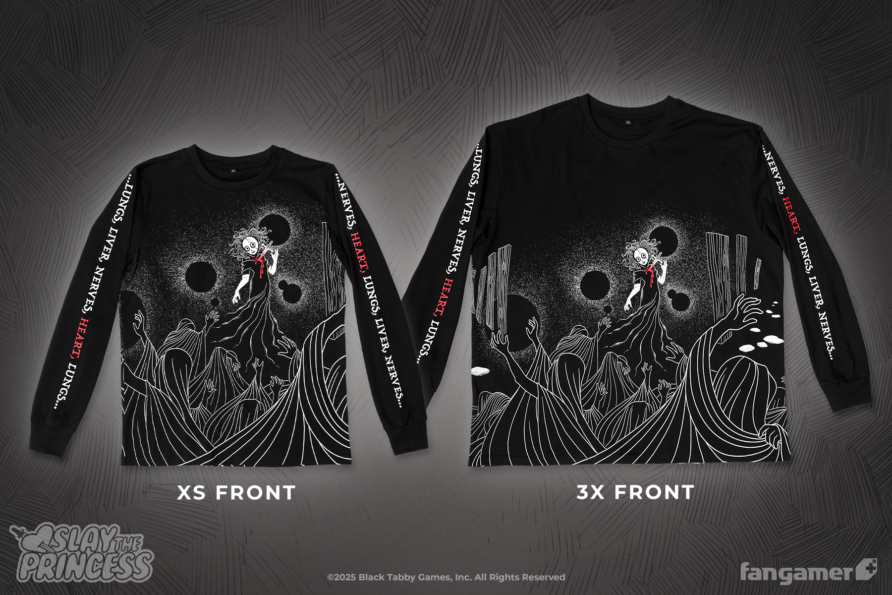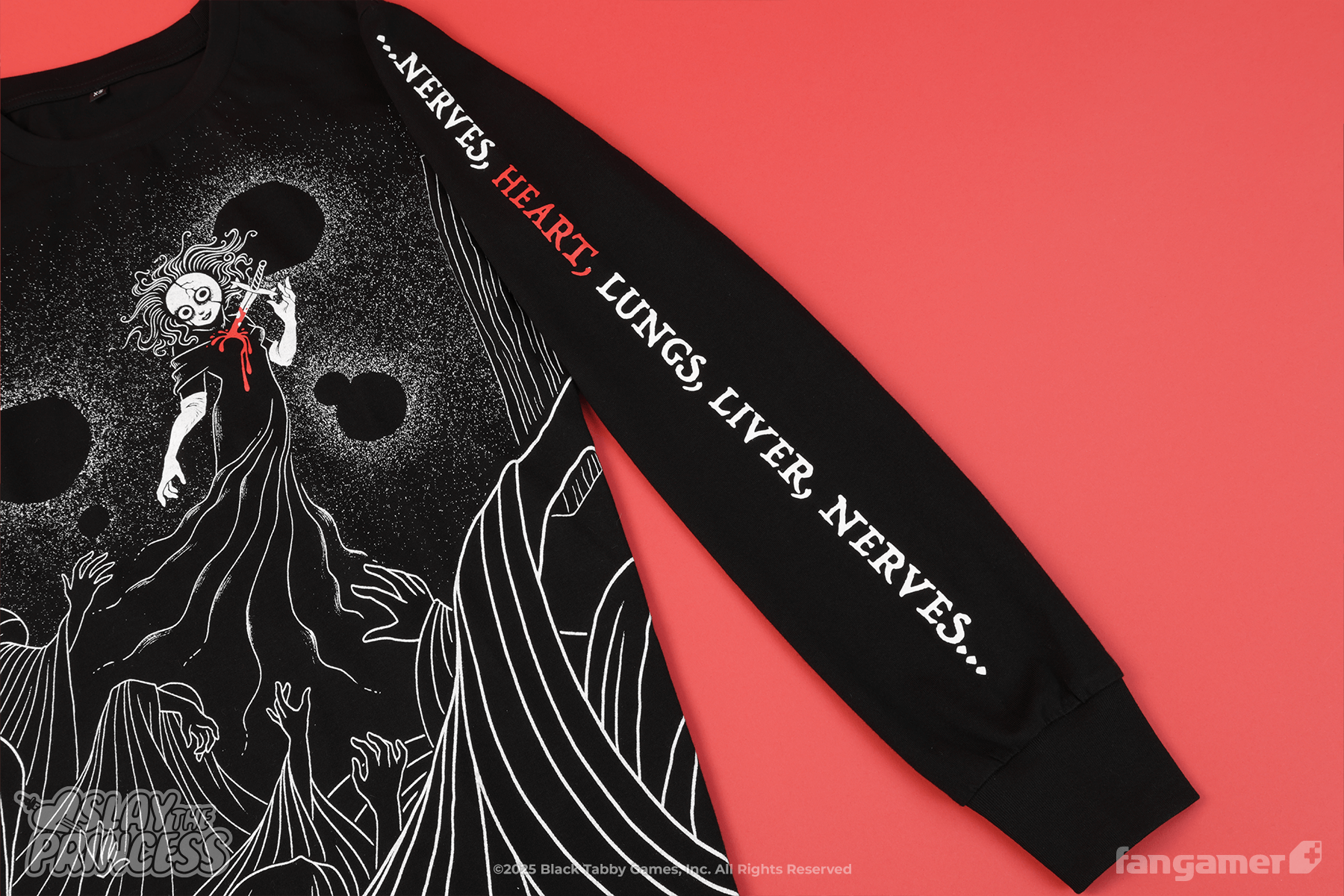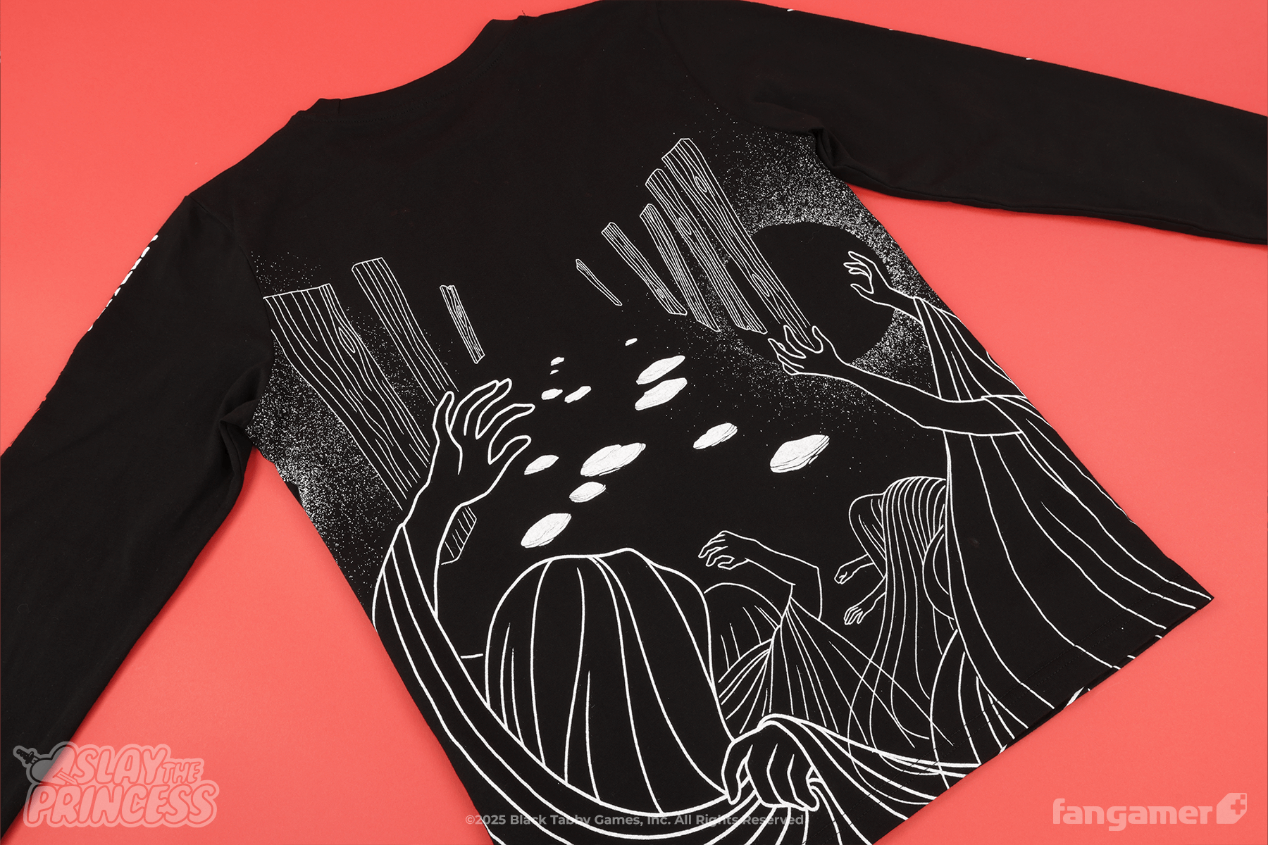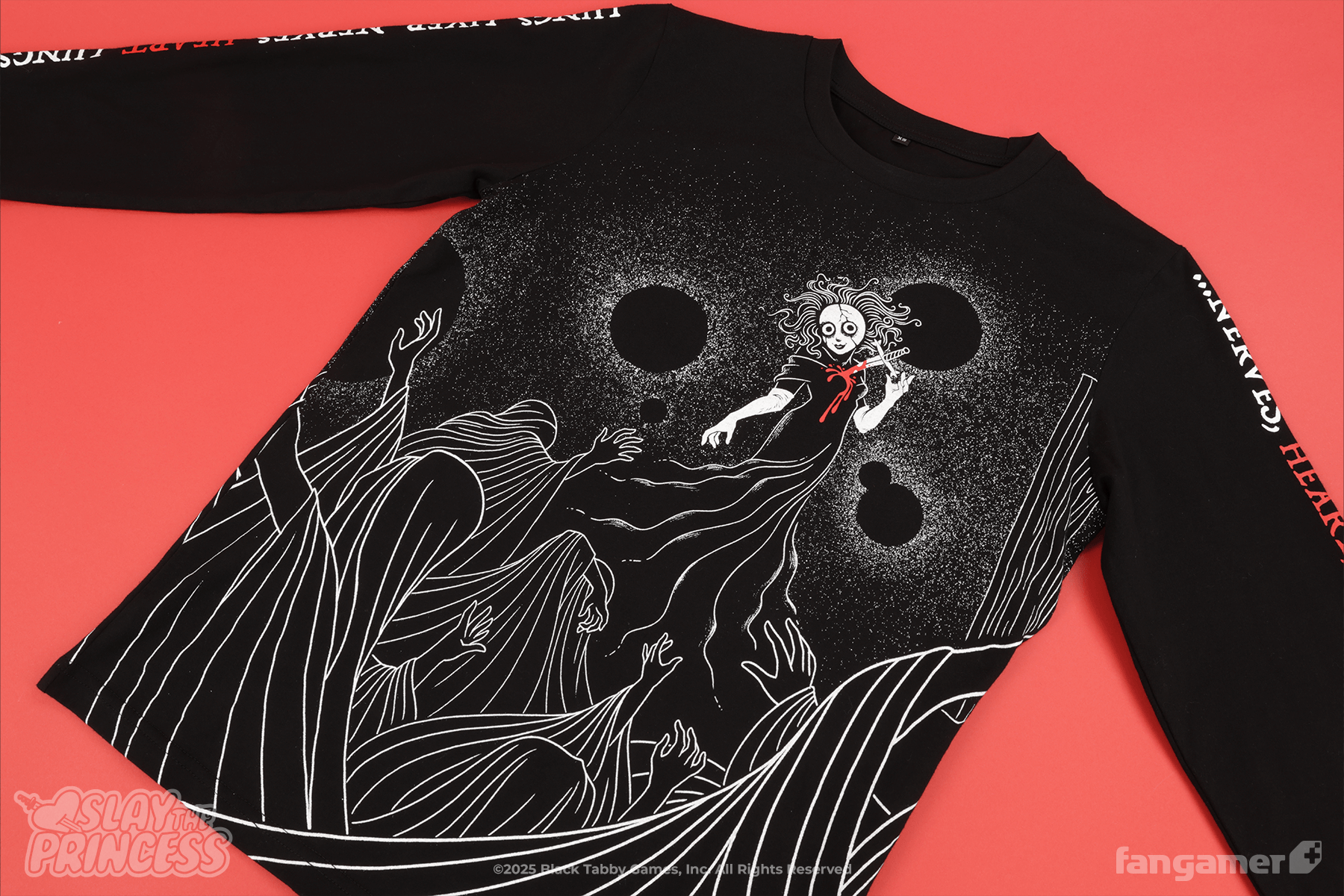 This official Slay the Princess long-sleeved shirt was designed by Laura Verdin. It's 100% cotton.