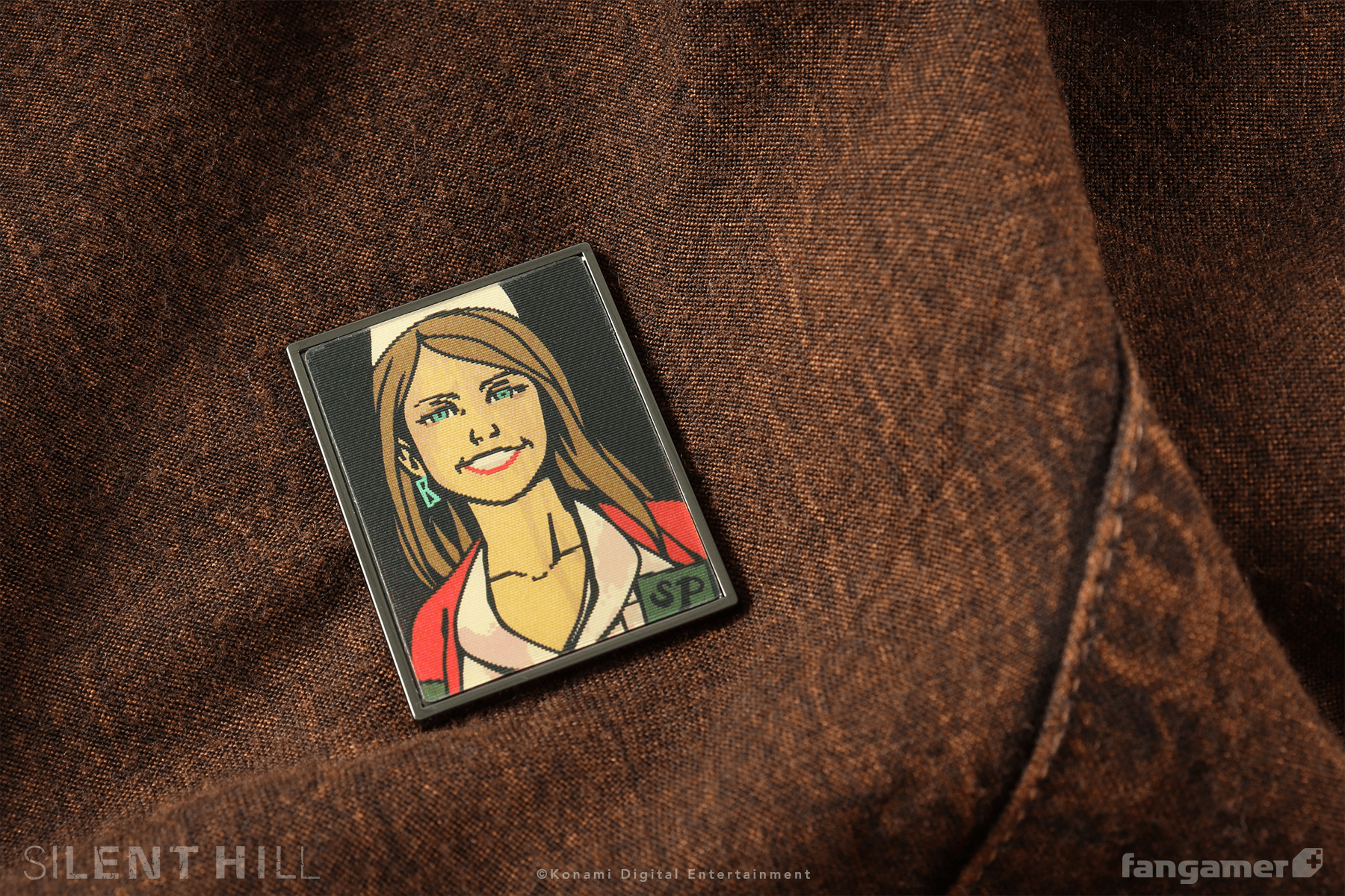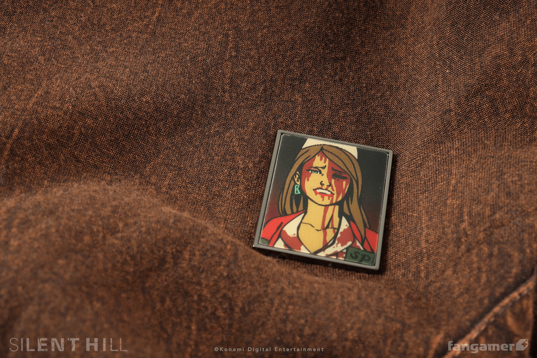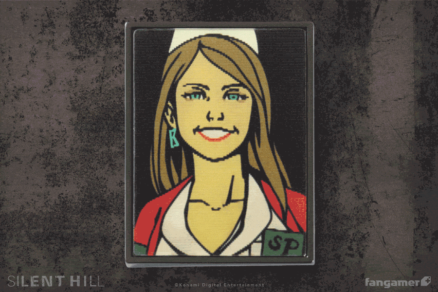 This officially licensed SILENT HILL pin was designed by Nina Matsumoto. It's 1.5 inches tall and shifts between two illustrations as you change your viewing angle.
