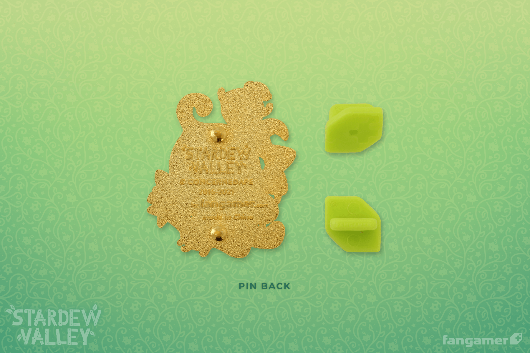 This official Stardew Valley pin was designed by Nina Matsumoto. It's a hard-enamel pin measuring about 1.5 inches tall.