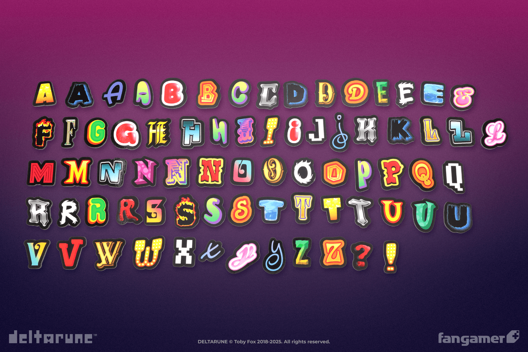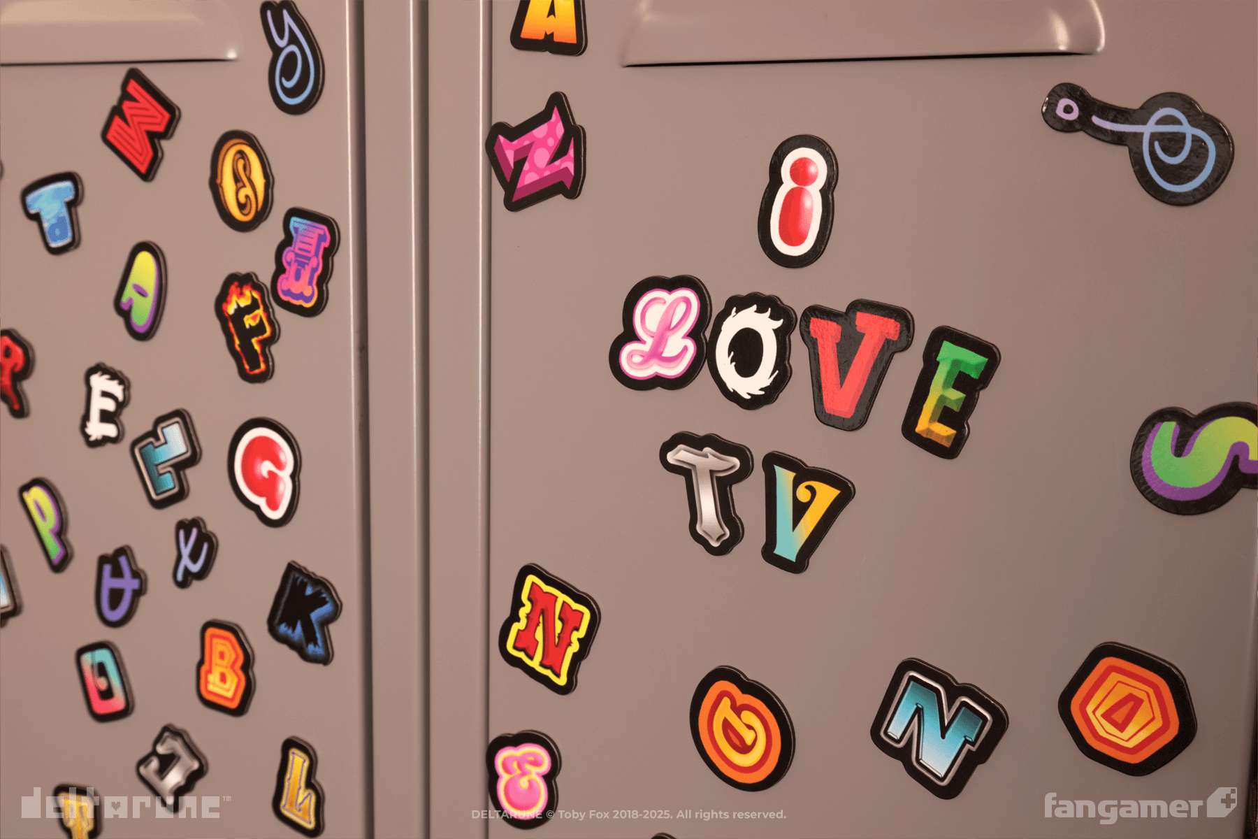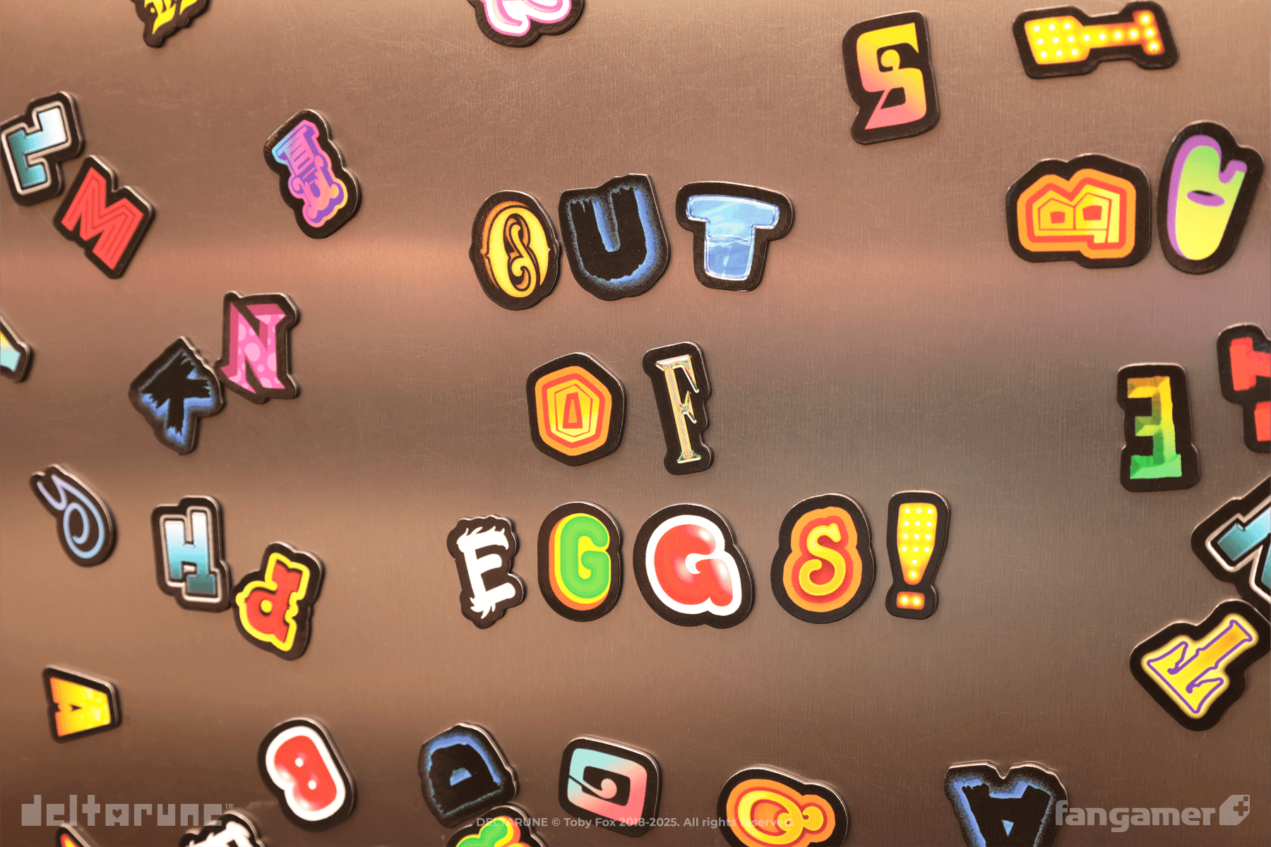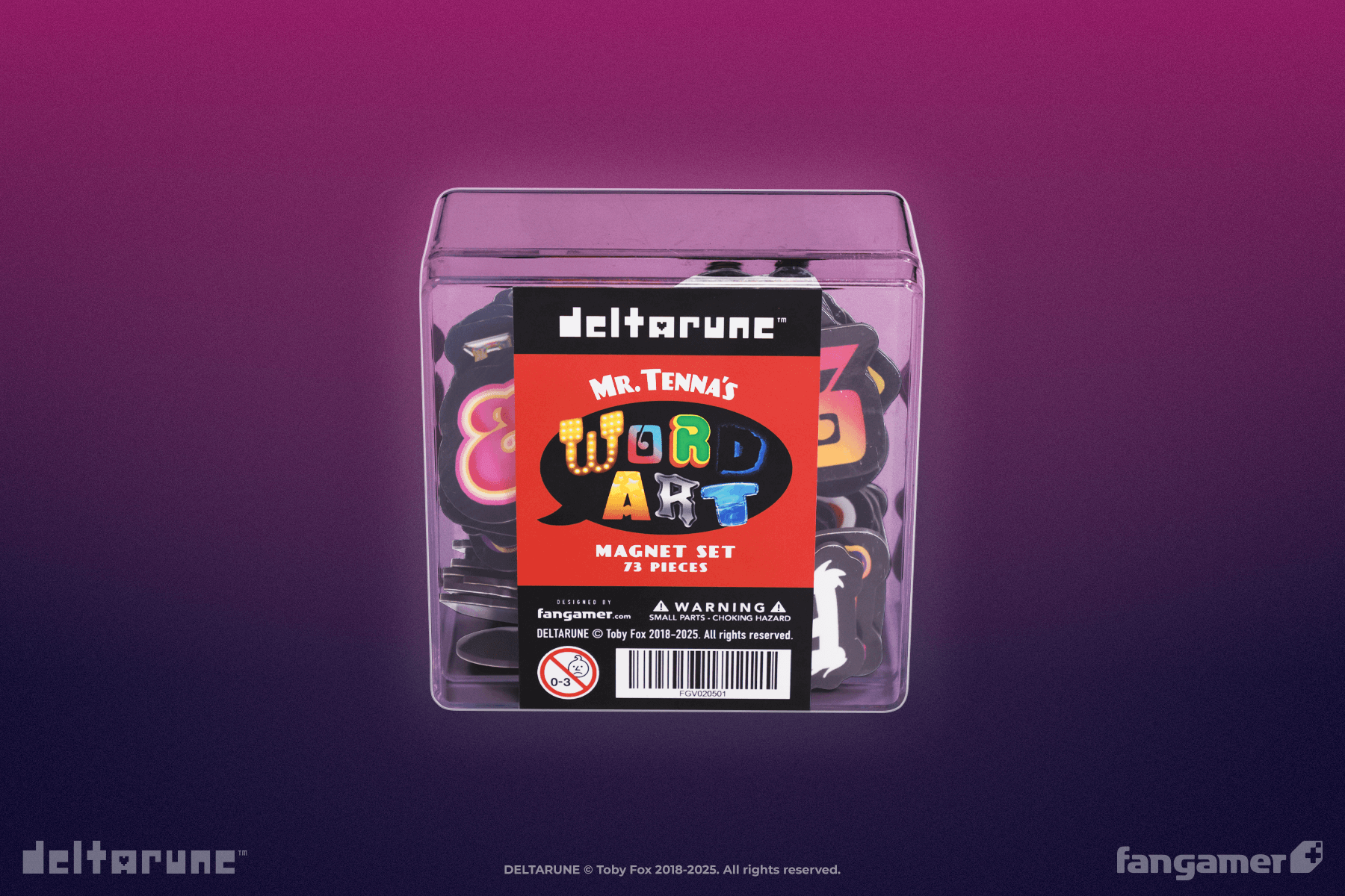 This set of 73 letter magnets is based on Tenna's dialogue word art, designed by Audrey Waner. Each one is approximately 1.5 inches tall. Not for use on Tenna.