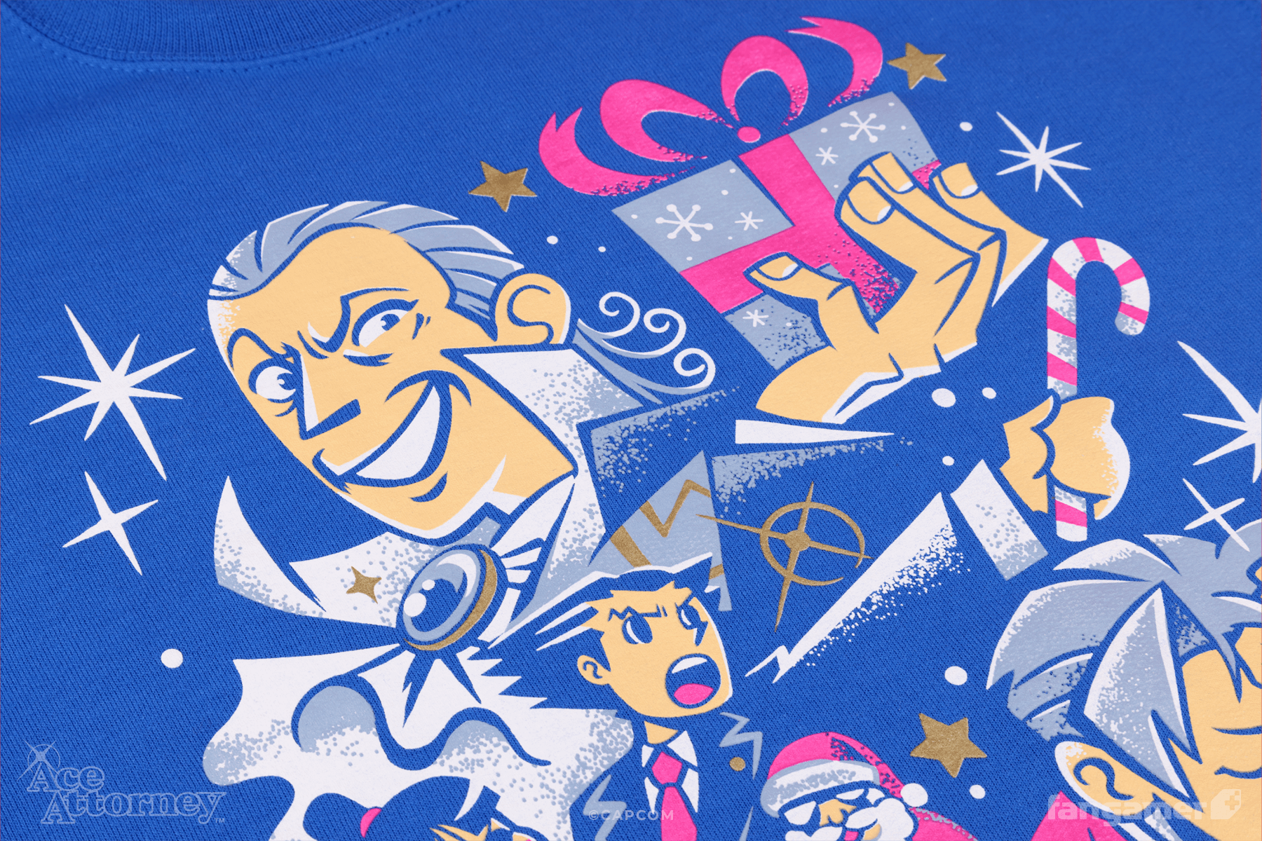 This official Ace Attorney design was illustrated by Nina Matsumoto and screenprinted by Forward on polycotton fleece sweatshirts from Port & Company.